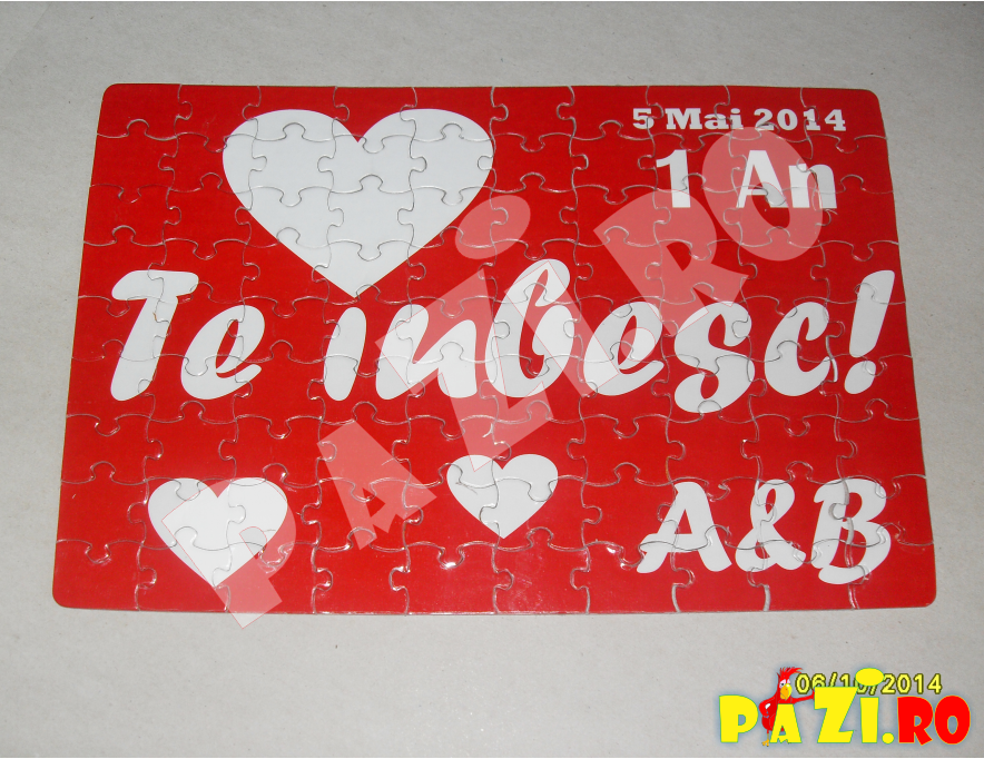 Daca esti o persoana romantica ii poti oferi cadou persoanei de langa tine un puzzle A4 cu o imagine de la nunta voastra, de la o aniversare sau o excursie din care vrei sa pastrezi vie o amintire frumoasa.